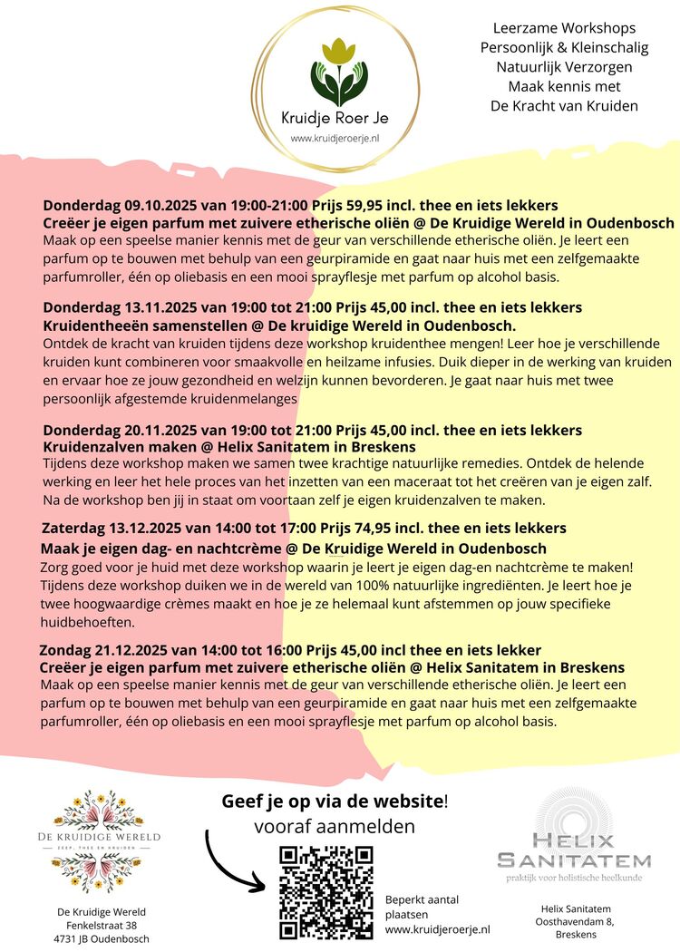 Na afloop ga je niet alleen naar huis met twee zelfgemaakte zalven, maar ook met de kennis en het vertrouwen om voortaan zelf je eigen kruidenzalf te maken.