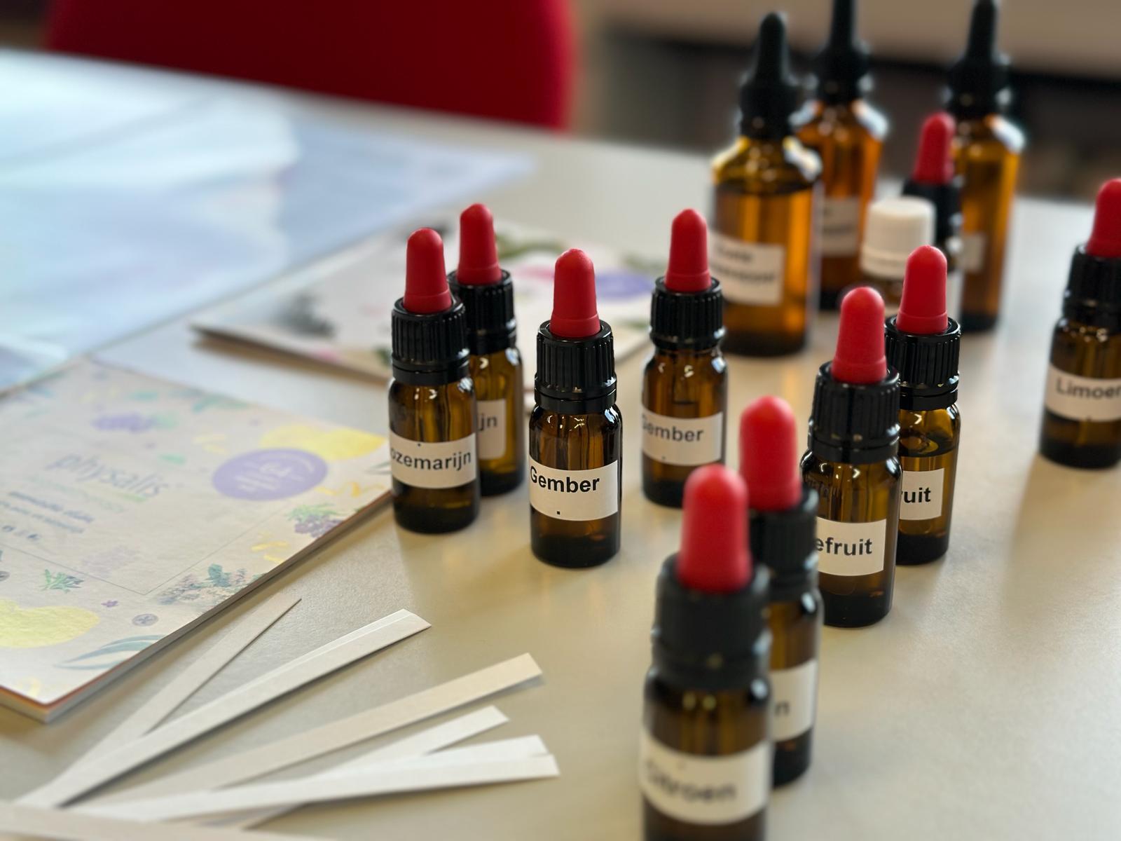 Je ontdekt hoe verschillend etherische oliën ruiken en hoe je ze kunt combineren tot een persoonlijk parfum.