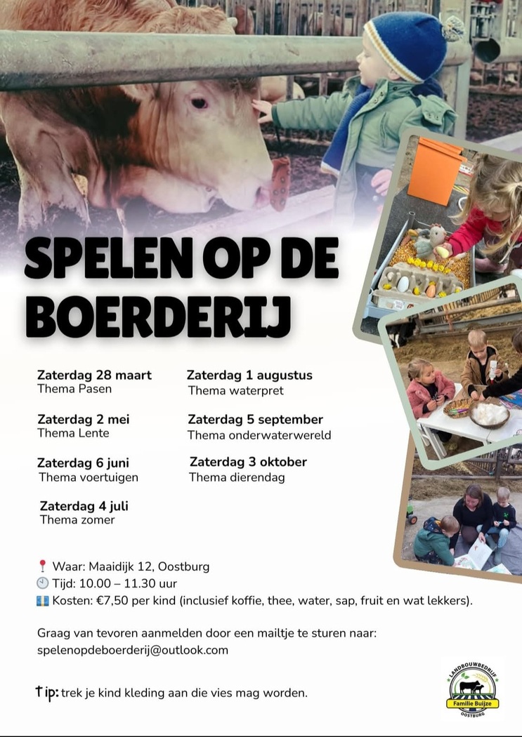 Op zaterdag 28 maart organiseren we een gezellige ochtend voor peuters en kleuters. Samen ontdekken, spelen en beleven we wat er allemaal op de boerderij te doen is.